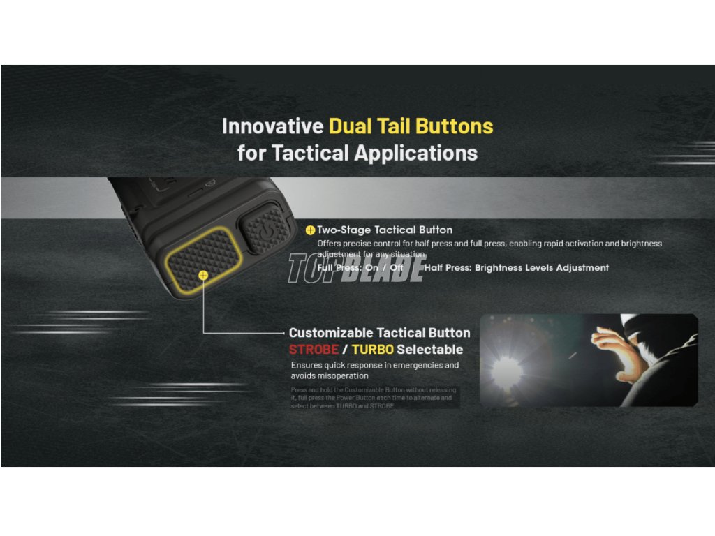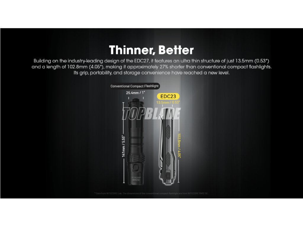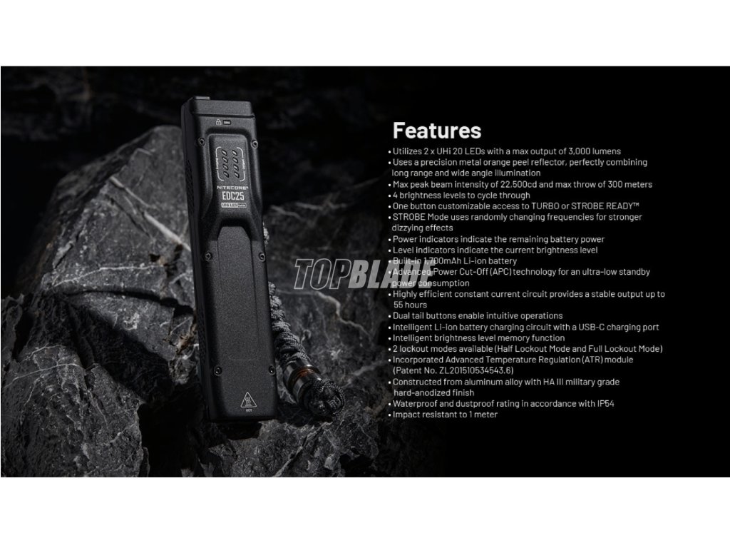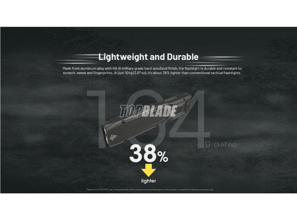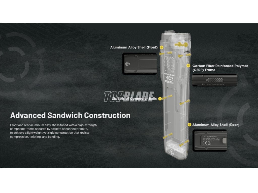 Die EDC25 von Nitecore besticht durch Kreativität und Innovation. Das ultraflache zweiteilige Aluminium-Gehäuse und der Rahmen aus faserverstärktem Kunststoff sorgen für Robustheit und optimierte Wärmeableitung. Die Nitecore EDC25 bietet eine maximale Leistung von 3000 Lumen und eine Reichweite von bis zu 300 Metern. Die beiden LED-Anzeigen ermöglichen es dir, den Akkustand und die aktuelle Leuchtstufe leicht abzulesen. Mit den zwei Lock-Out Modi und dem praktischen Design der Endkappe kann ein versehentliches Einschalten vermieden werden. Der im Lieferumfang befindliche Clip fixiert die Leuchte an der Hosentasche.