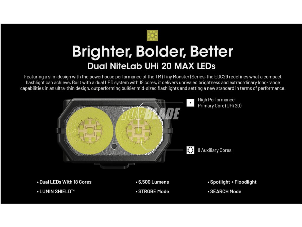 Die Nitecore EDC29 Luminblade ist eine kompakte und leistungsstarke Akku-Taschenlampe, die speziell für den taktischen Einsatz und Outdoor-Abenteuer entwickelt wurde. Mit beeindruckenden 6500 Lumen Helligkeit sorgt sie für eine breite und klare Beleuchtung und erreicht in ihrem taktischen Suchmodus eine Reichweite von bis zu 400 Metern. Der integrierte 2500mAh Li-Ionen-Akku bietet eine lange Laufzeit und kann einfach über USB wiederaufgeladen werden, sodass Sie immer einsatzbereit sind.