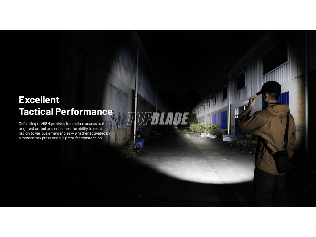 Die Nitecore MT1C Pro hat zwei Leuchtmodi, die Du beide mit dem taktischen Schalter am Ende des Lampengehäuses bedienen kannst. Wenn das Licht ausgeschaltet ist, drückst Du die Einschalttaste ganz durch, um den hohen 1000-Lumen-Modus zu aktivieren. Um den niedrigen Modus mit 50 Lumen zu aktivieren, drückst Du bei ausgeschaltetem Licht den Schalter ganz durch, lässt ihn los und drückst ihn innerhalb von 2 Sekunden erneut ganz durch. Außerdem kannst Du die Taste halb drücken, um die Lampe vorübergehend einzuschalten.