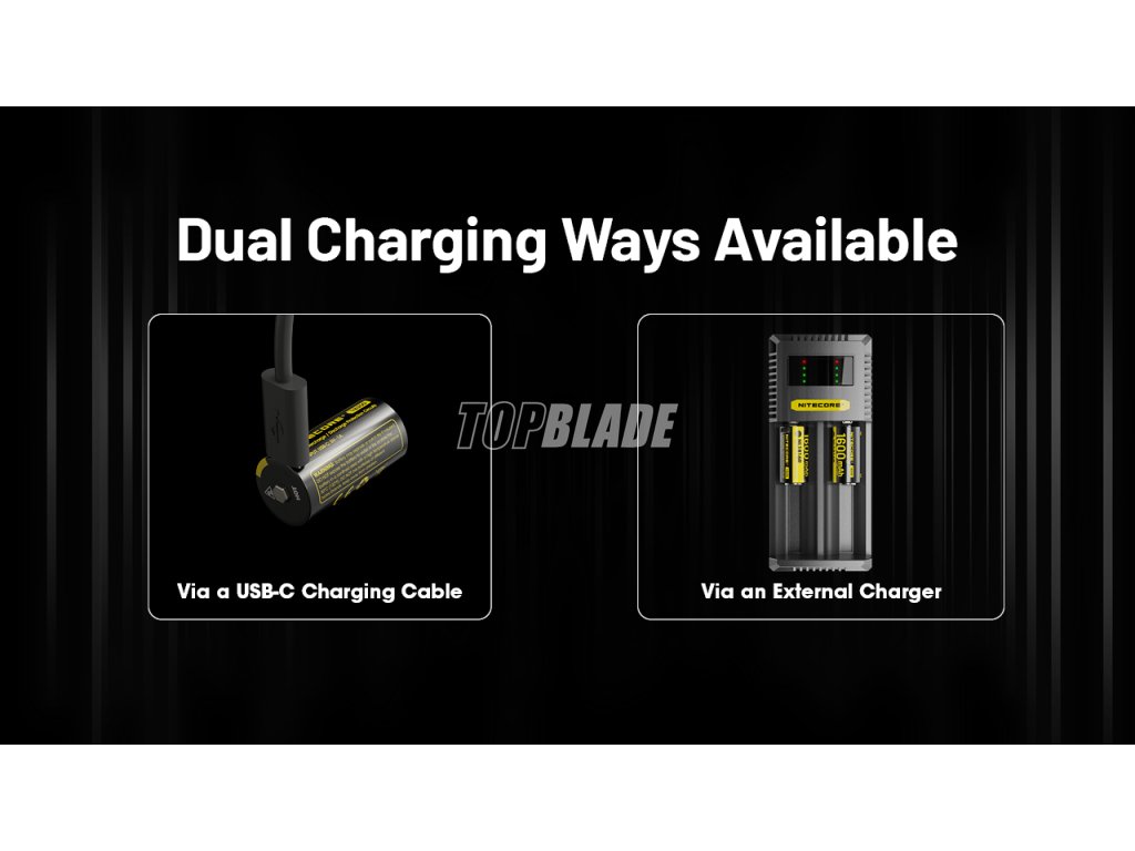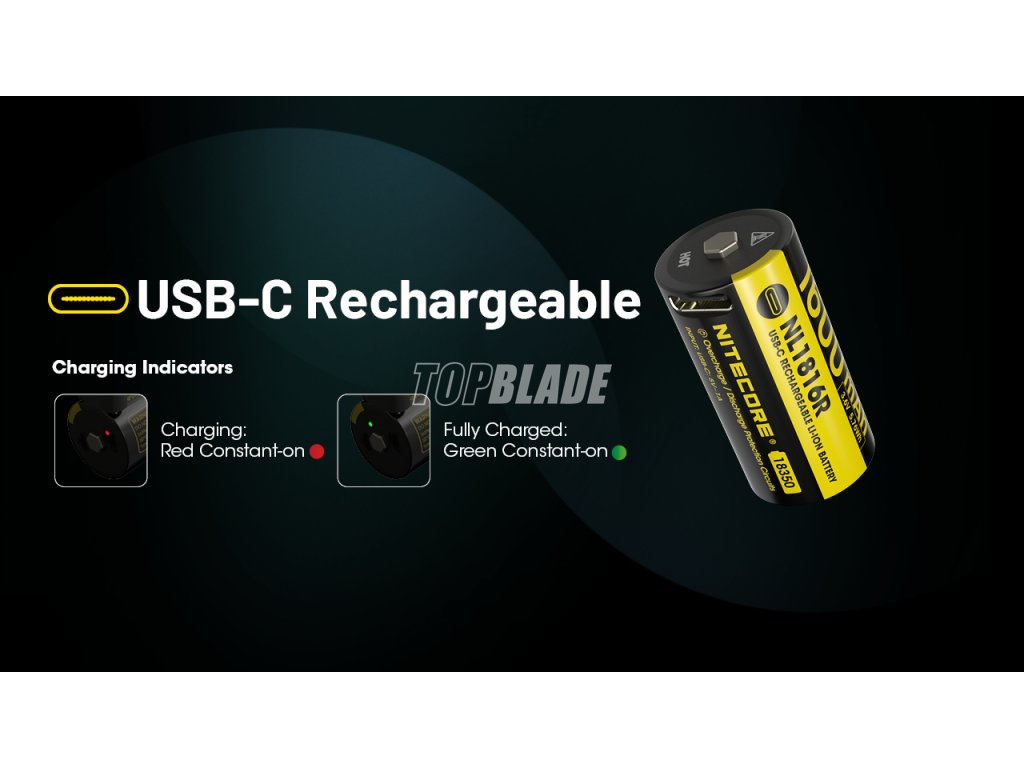Die Taschenlampe lädst Du mühelos mit dem mitgelieferten USB-C Kabel auf. Nimm den Akku aus der Lampe und schließe das Kabel direkt am USB-Port des Akkus an. Die Lampe selbst hat keinen Ladeanschluss. Die Lampe ist am Ende des Gehäuses mit einem Rand versehen, damit sich die Lampe nicht aus Versehen einschaltet. Du kannst daran auch ein Stück Paracord befestigen, um die Lampe leichter in Deiner Ausrüstung zu erreichen.