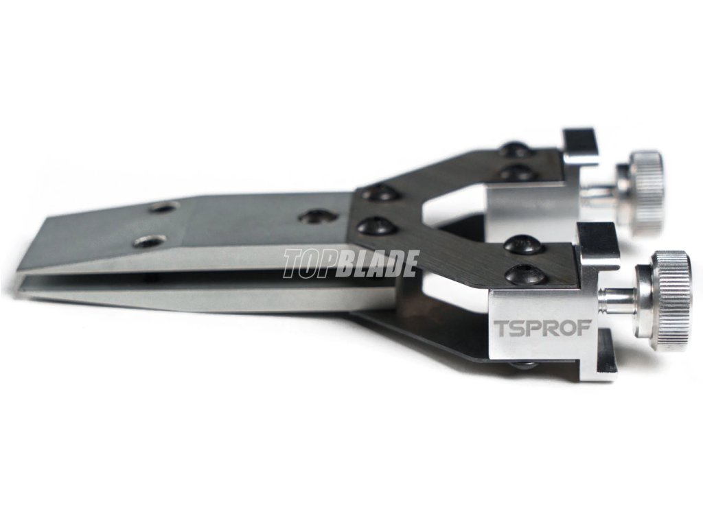 Die TSPROF Single Fillet Clamp, ist eine dünne Einzelklemme zum Schleifen der Klingen von kleinen Taschen- oder Filetiermessern. Mit dieser Klemme kannst Du Messer, die nur 1 cm hoch sind, auf dem TSPROF K03, K4 und Kadet Schleifsystem schärfen.